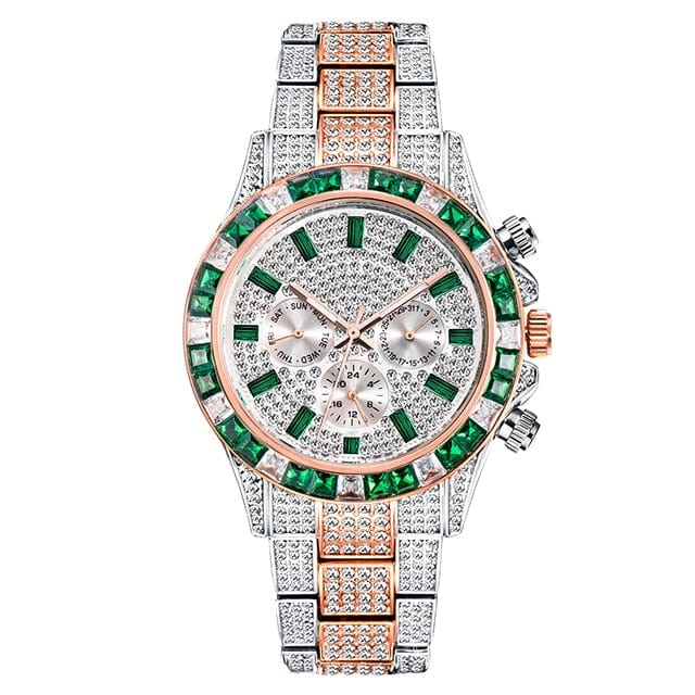 Cette montre exquise arbore un design audacieux et bicolore dans des tons de vert qui dégage une aura de confiance et de sophistication.