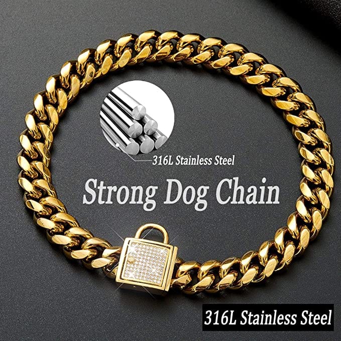 Nuestro collar cubano dorado para perros promete resistencia y seguridad, y lo que es más importante, comodidad.