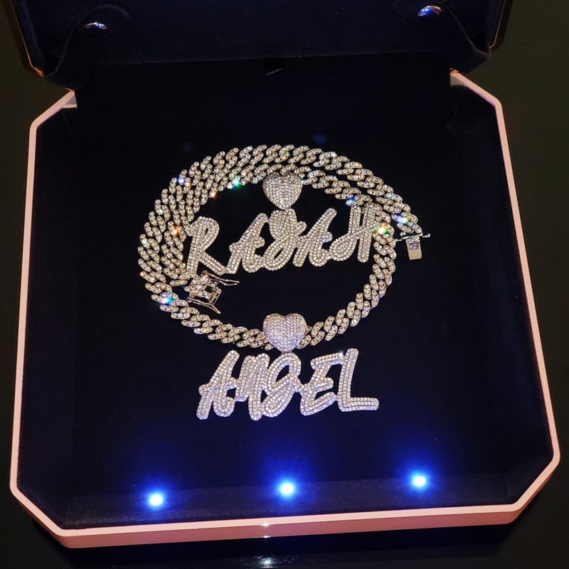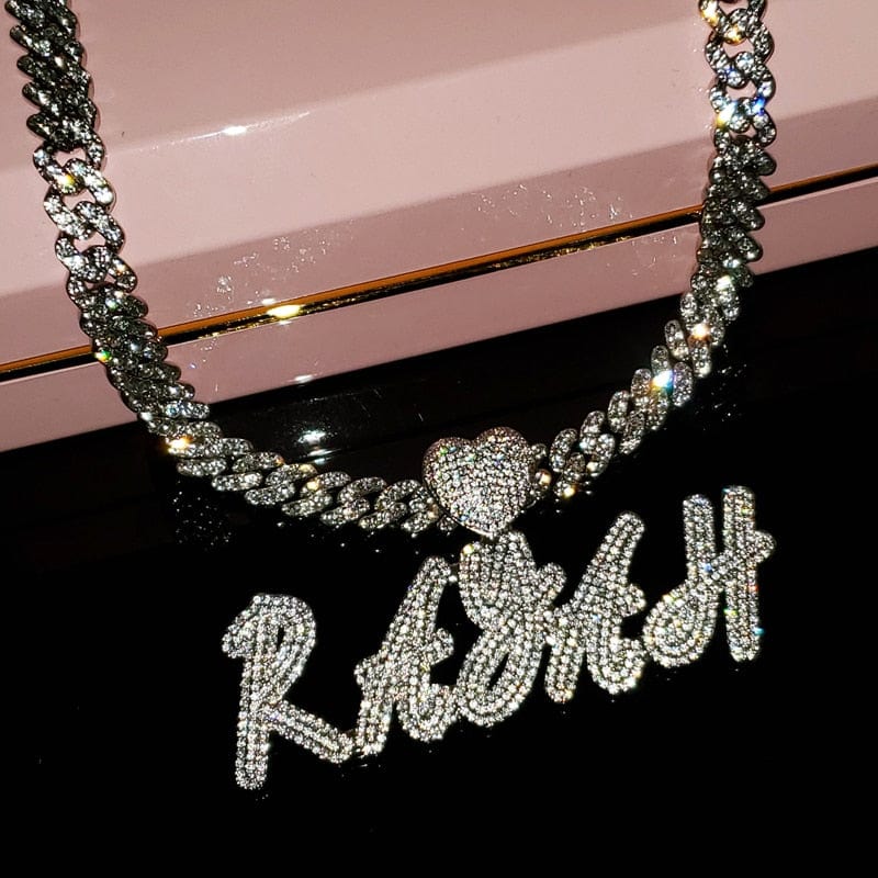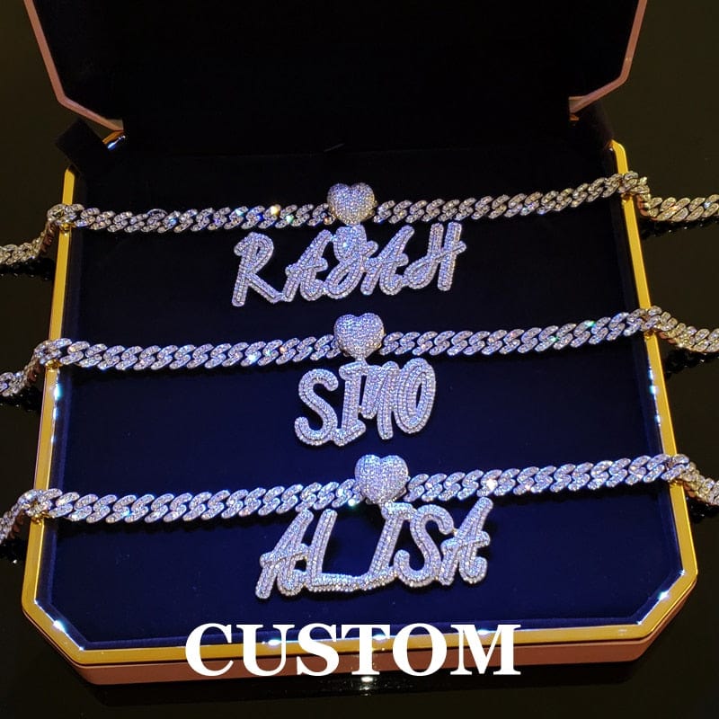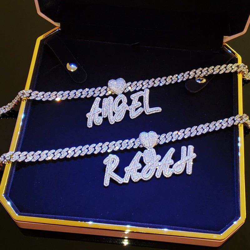 9MM Custom Heart Bail Brush Cursive Cuban Name Pendant Necklace