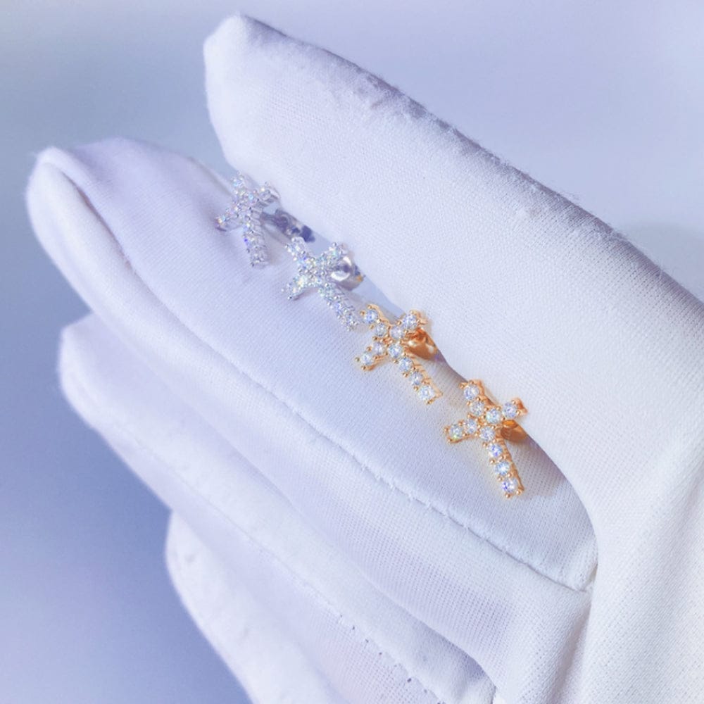 Cross 925 Silver Moissanite Iced Cross Earrings