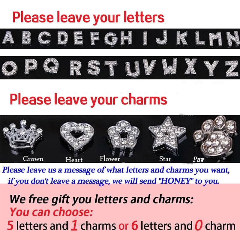¿Buscas un bonito accesorio de moda para tu mascota? ¡Este es el collar bandana personalizado más moderno para su perro o incluso gato! ¡Tiene un collar para mascotas de cuero de PU personalizado de 10 mm en el que podemos colocar el nombre de su mascota en letras impresionantes más un amuleto! Apostamos a que no podrás resistirte a este bling personalizado para tu amigo peludo.