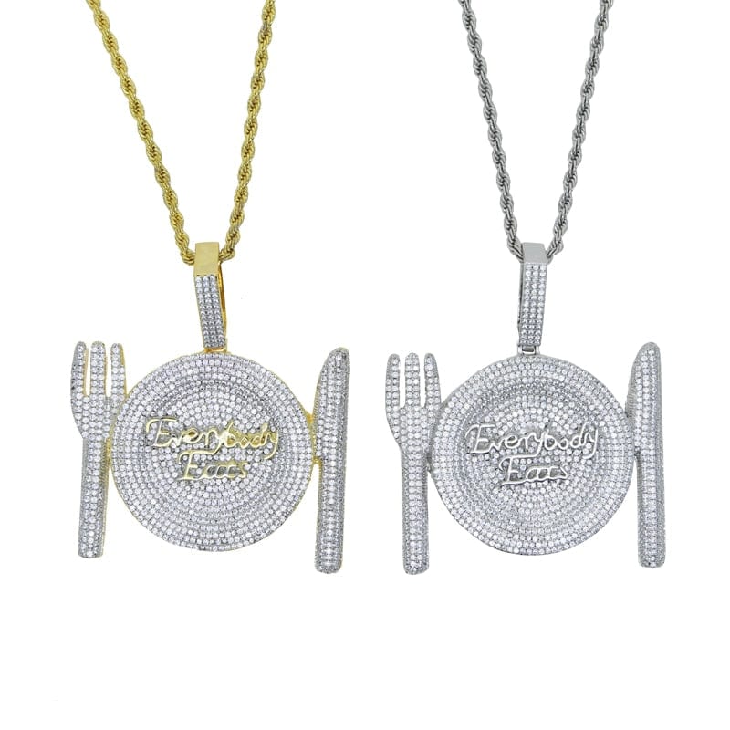 IF YOU LOVE FOOD AS WELL AS SPARKLY JEWELRY, THIS EVERYBODY EATS ICED OUT PENDANT CHAIN IS ALL YOU NEED.