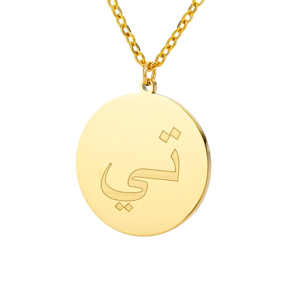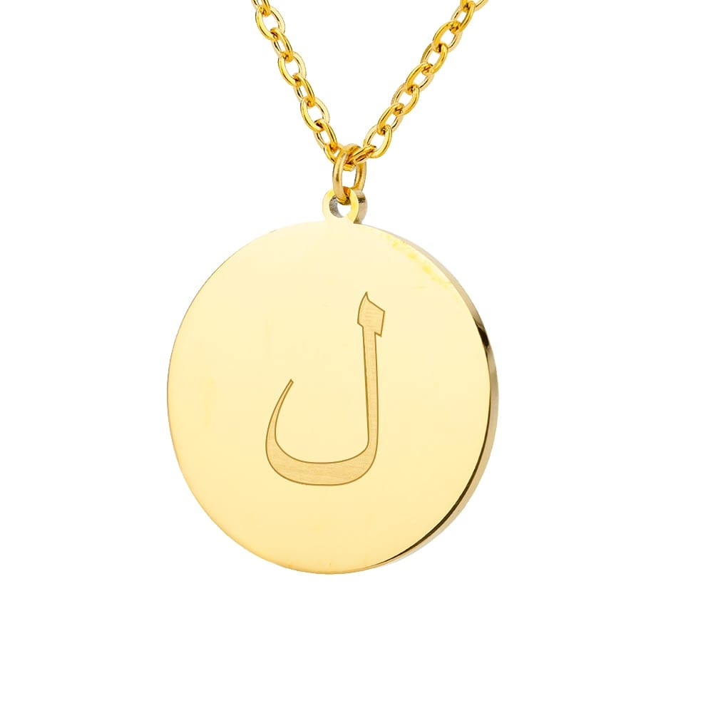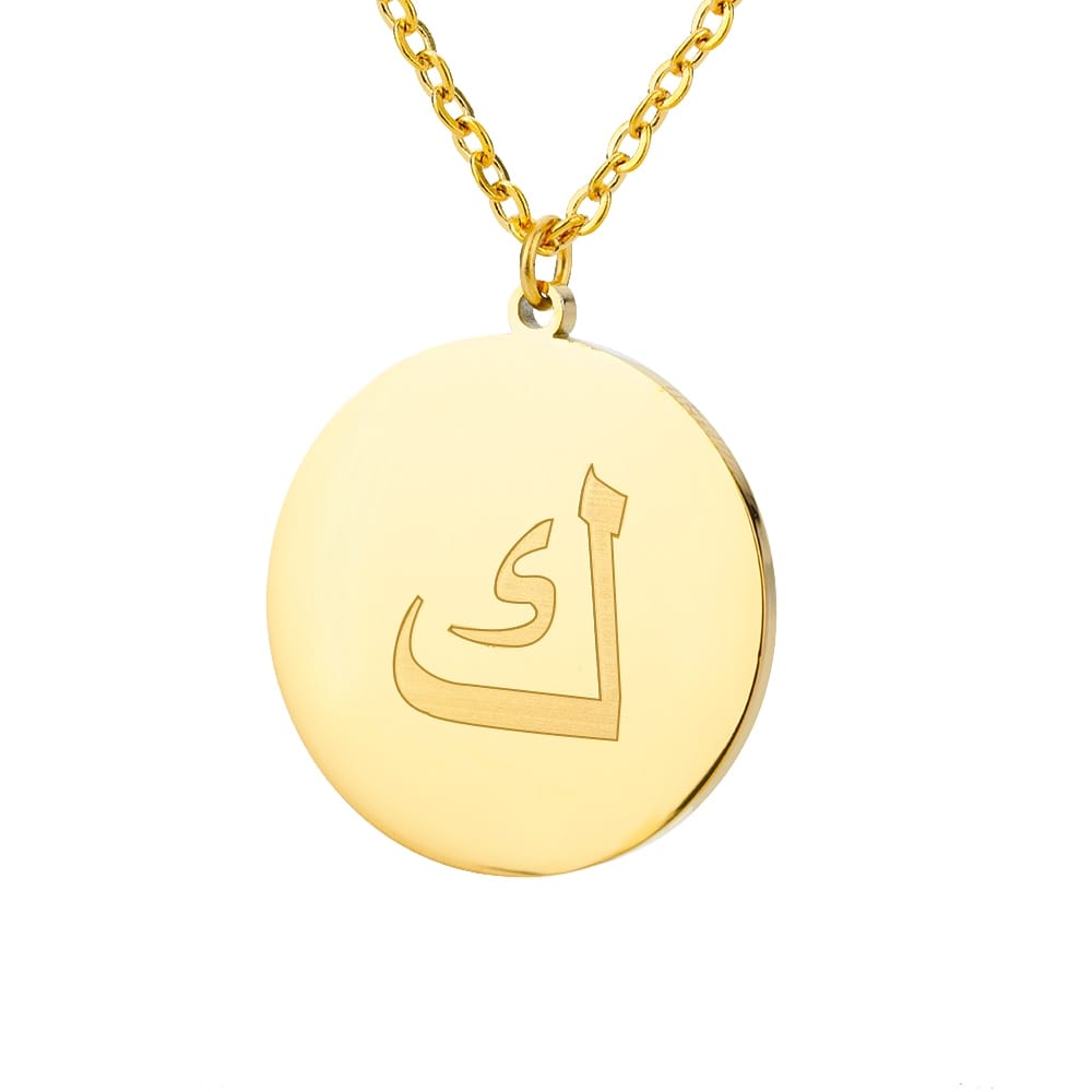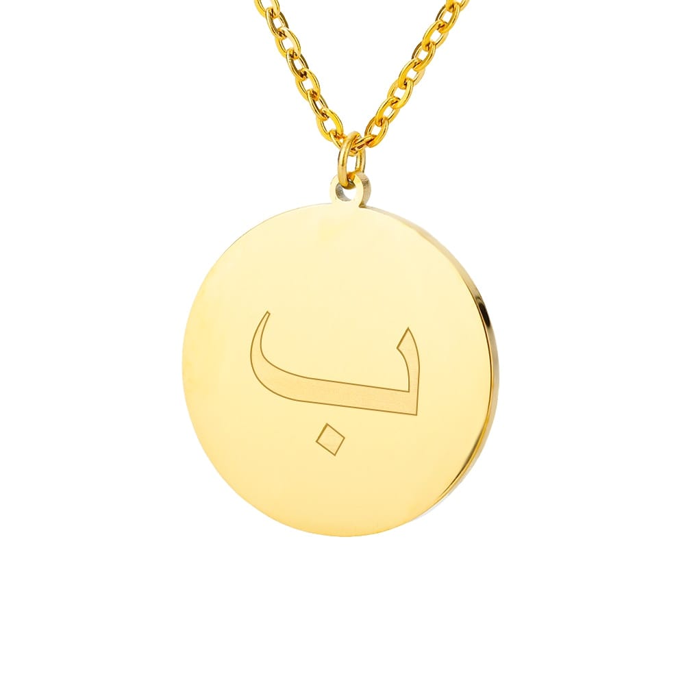 This timeless Letter Initial Pendant features a one-third inch pendant with an Arabic letter elegantly engraved on the front for a glossy appearance.