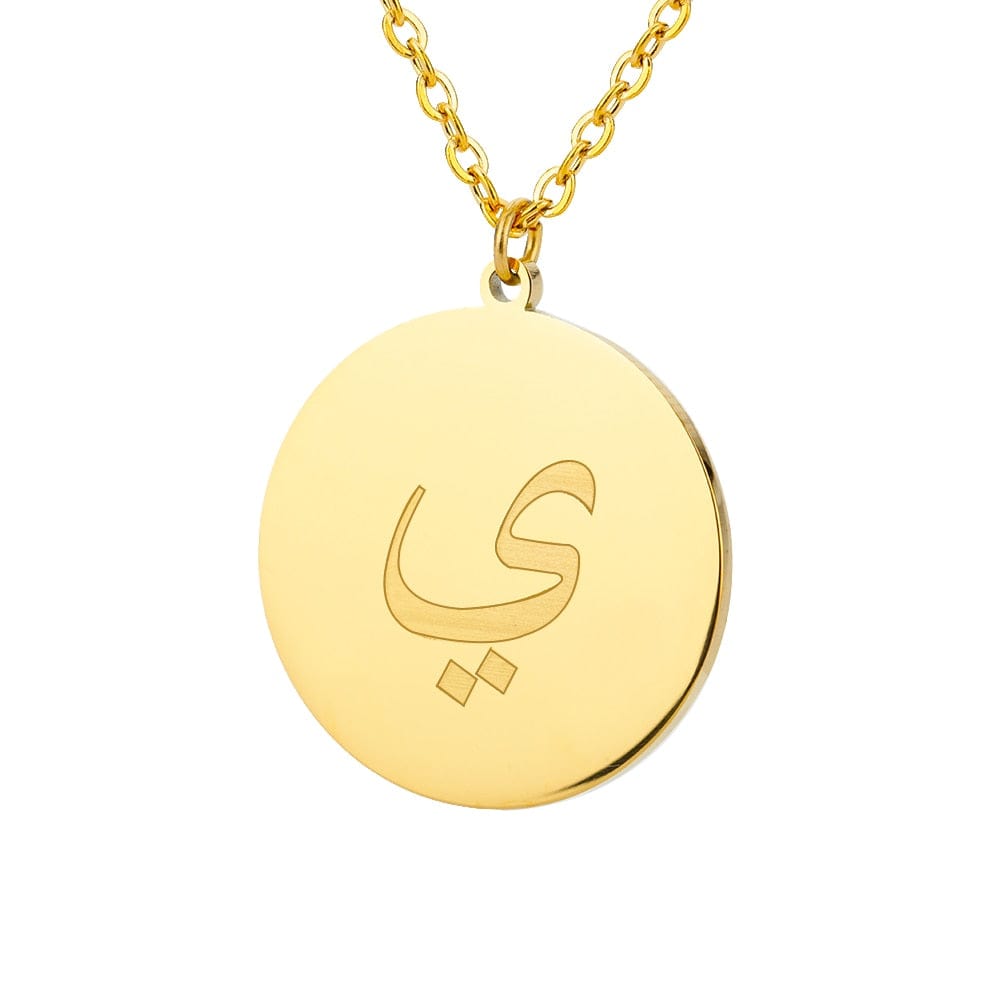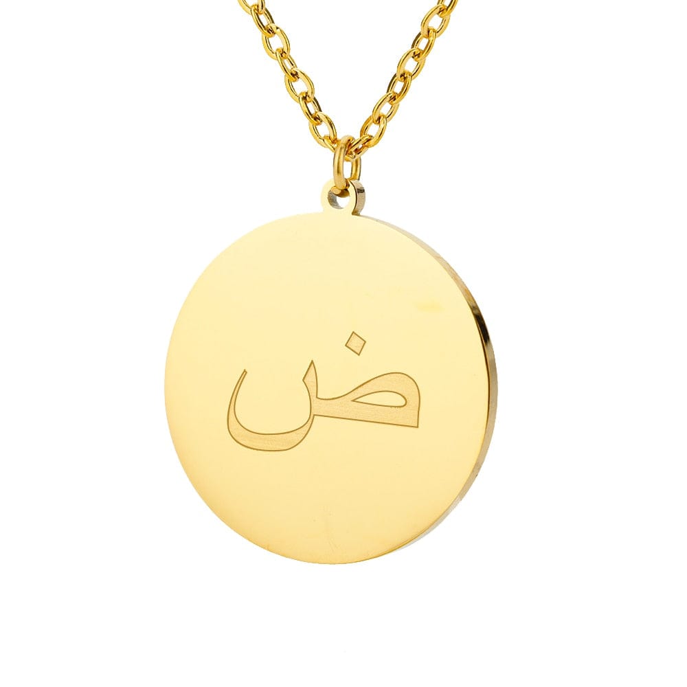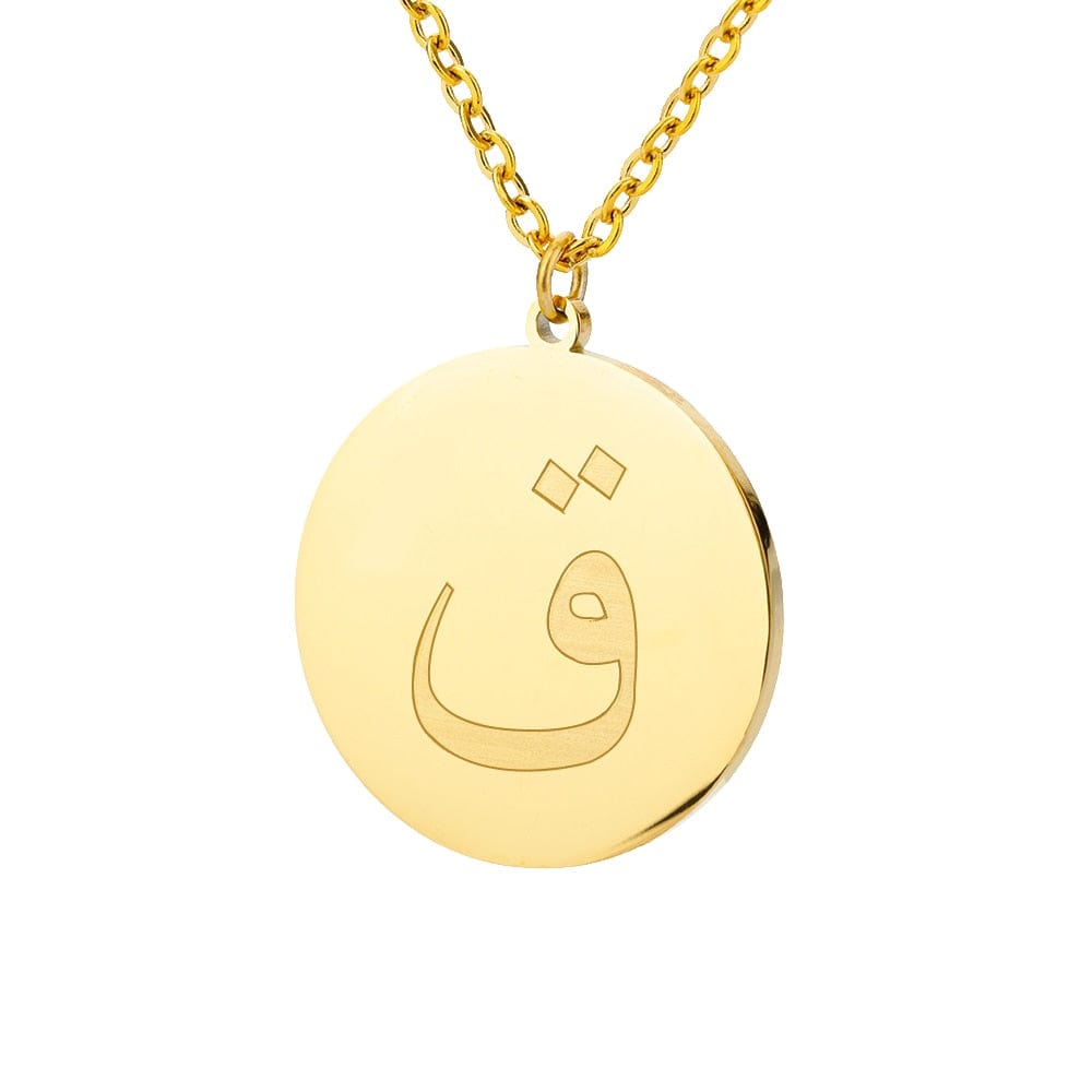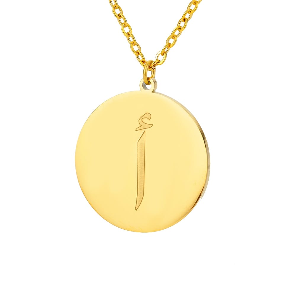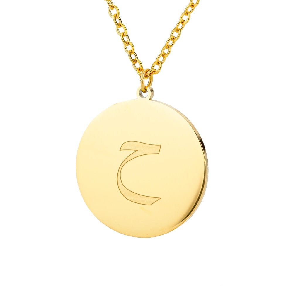 This timeless Letter Initial Pendant features a one-third inch pendant with an Arabic letter elegantly engraved on the front for a glossy appearance.