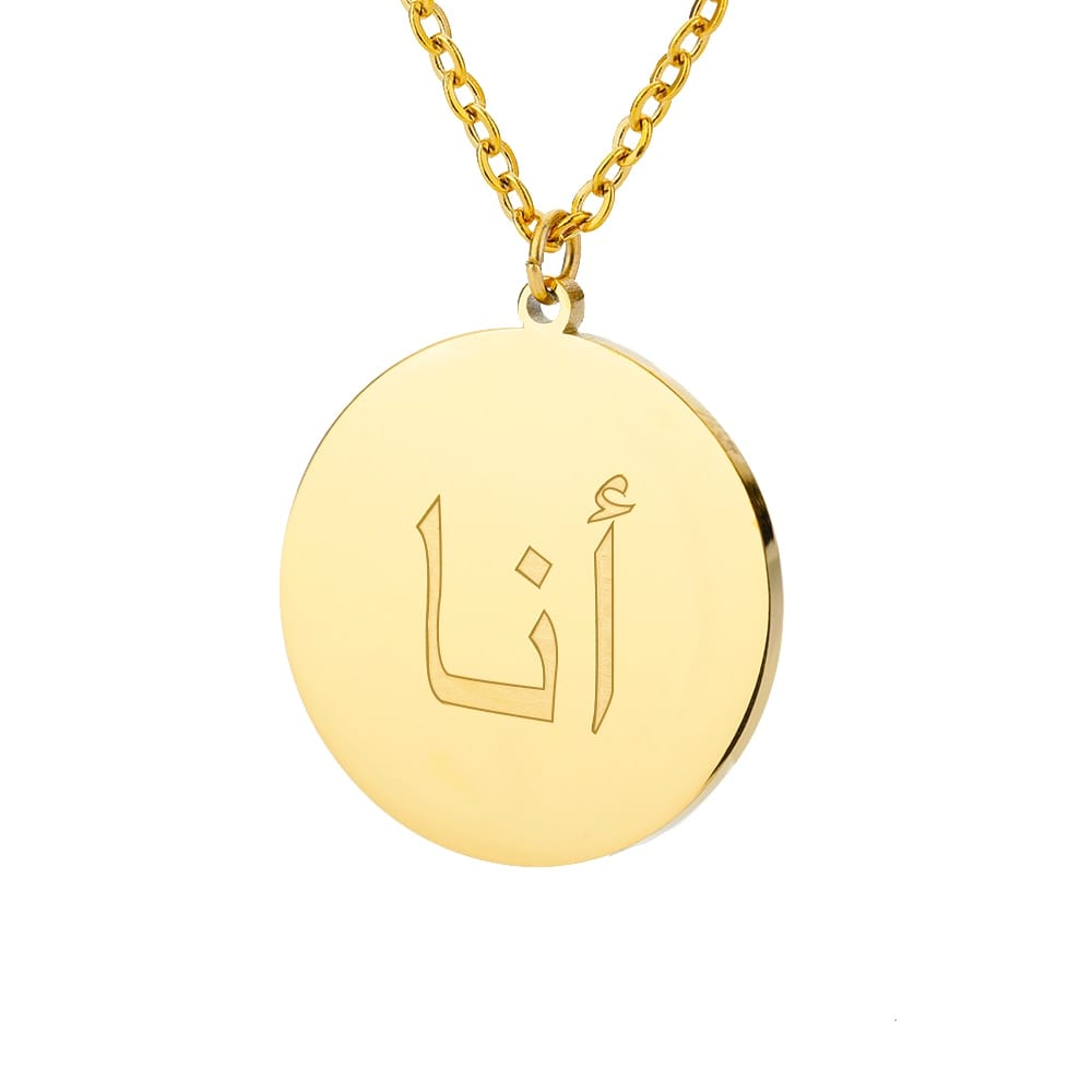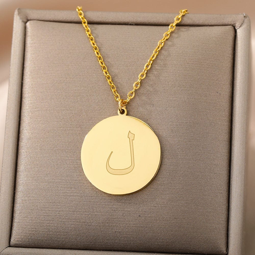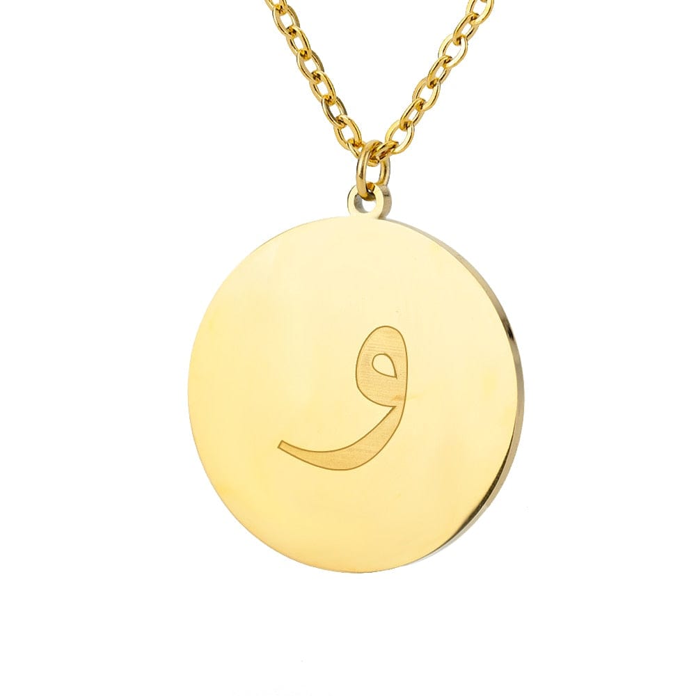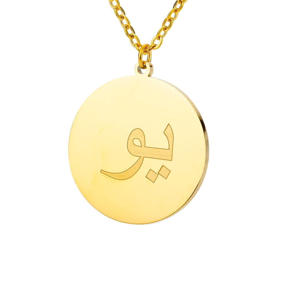 This timeless Letter Initial Pendant features a one-third inch pendant with an Arabic letter elegantly engraved on the front for a glossy appearance.