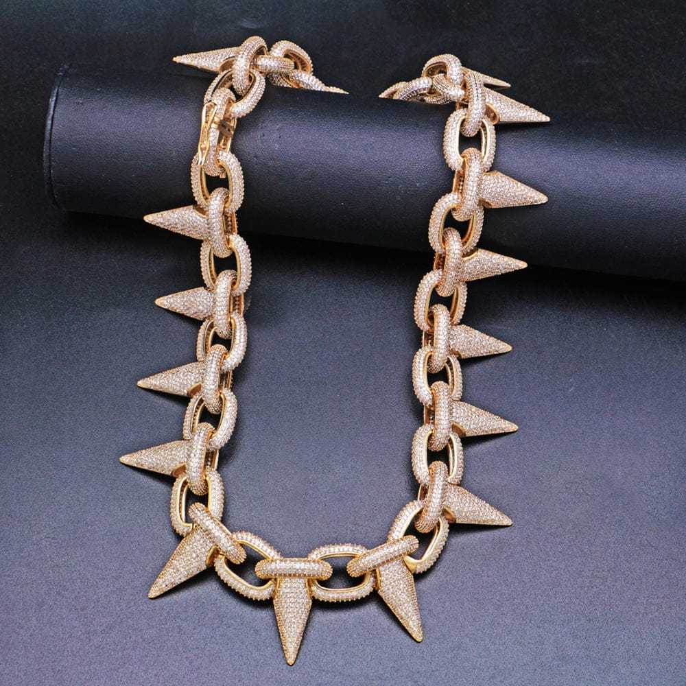 The Rivet Spike Necklace has a breakthrough design, unique and sophisticated, made with all-around sparkly prong-set stones. This Necklace is created to do the talking for you.