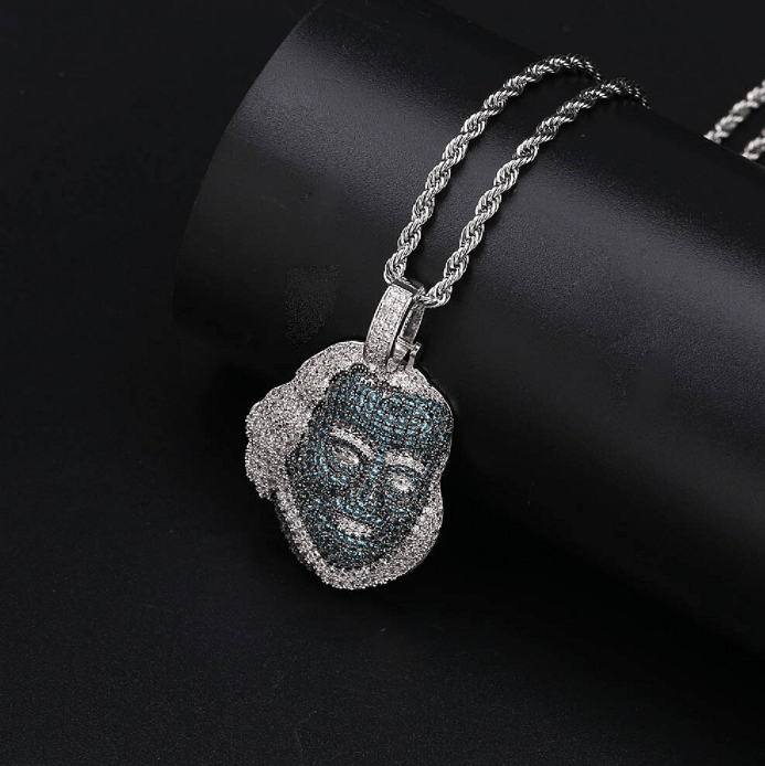 Luce como Drizzy con nuestra nueva cadena colgante Icy Da Blue Face Benjamin. Esta pieza está llena de piedras colocadas a mano, para que brille desde todos los ángulos.