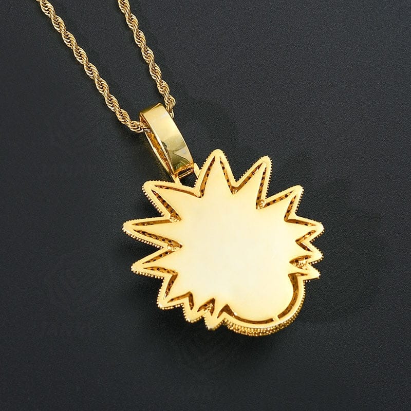 El colgante Evil Rick muestra al científico loco en piedras VVS Diamond Simulate y chapado en oro de 14K para una exhibición vibrante