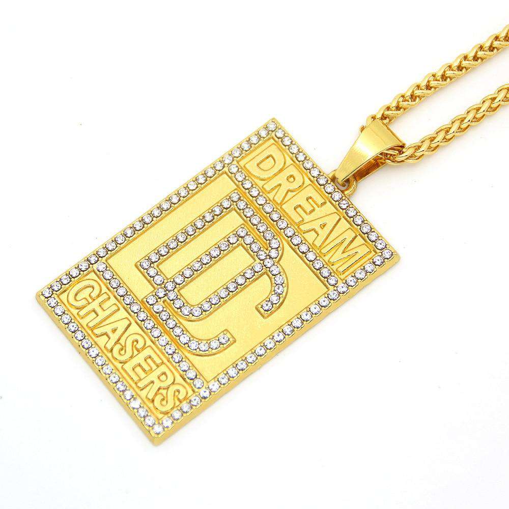 Meek Mill Dream Chasers Collar con colgante chapado en oro de 14 k