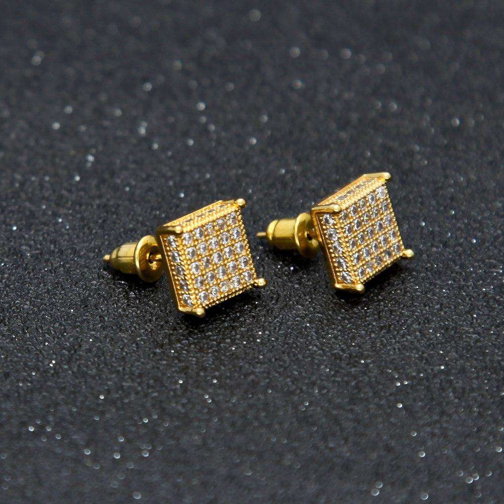 Estos pendientes te harán lucir como si fueras el dueño del lugar. Forma cuadrada y llena de hielo para que puedas rockear. Disponible en oro y plata, y en dos tamaños.