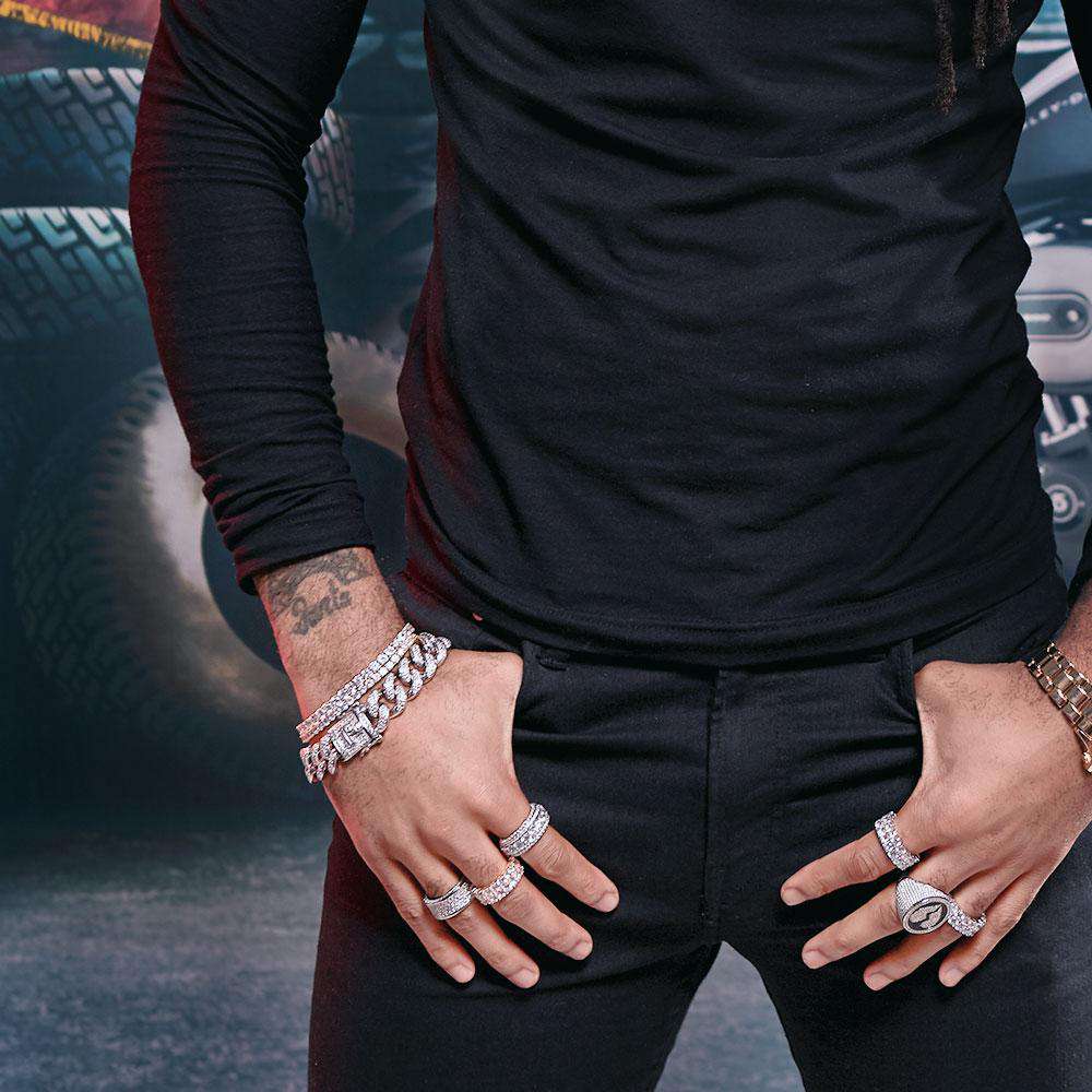 VVS Jewelry Pulsera cubana con puntas de oro blanco de 12 mm