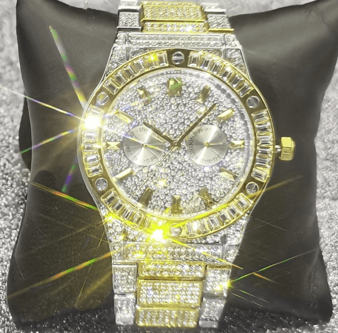 Don't miss the chance to own this luxury quartz watch with fully iced CZ & baguette stones!!