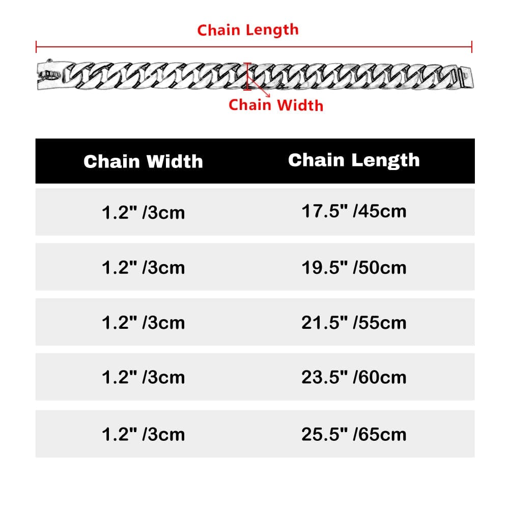Who Needs this Collar? Do you have a dog that likes to chew? If yes, then this Collar is perfect! The luxurious Cuban link chain collar looks cool on both male and female dogs. It's designed for medium or large dogs. Whether you're training or just walking your dog this chain is solid and heavy because it is not hollow. It's made out of high-quality stainless steel with stunning CZ stones on chains that made it stand out from the crowd with premium polished craftsmanship makes the surface shiny and smooth and comfortable; we believe your Dog will be proud to wear this Collar. It's available from 17.7" to 25.5" See the provided image for measurement instruction.