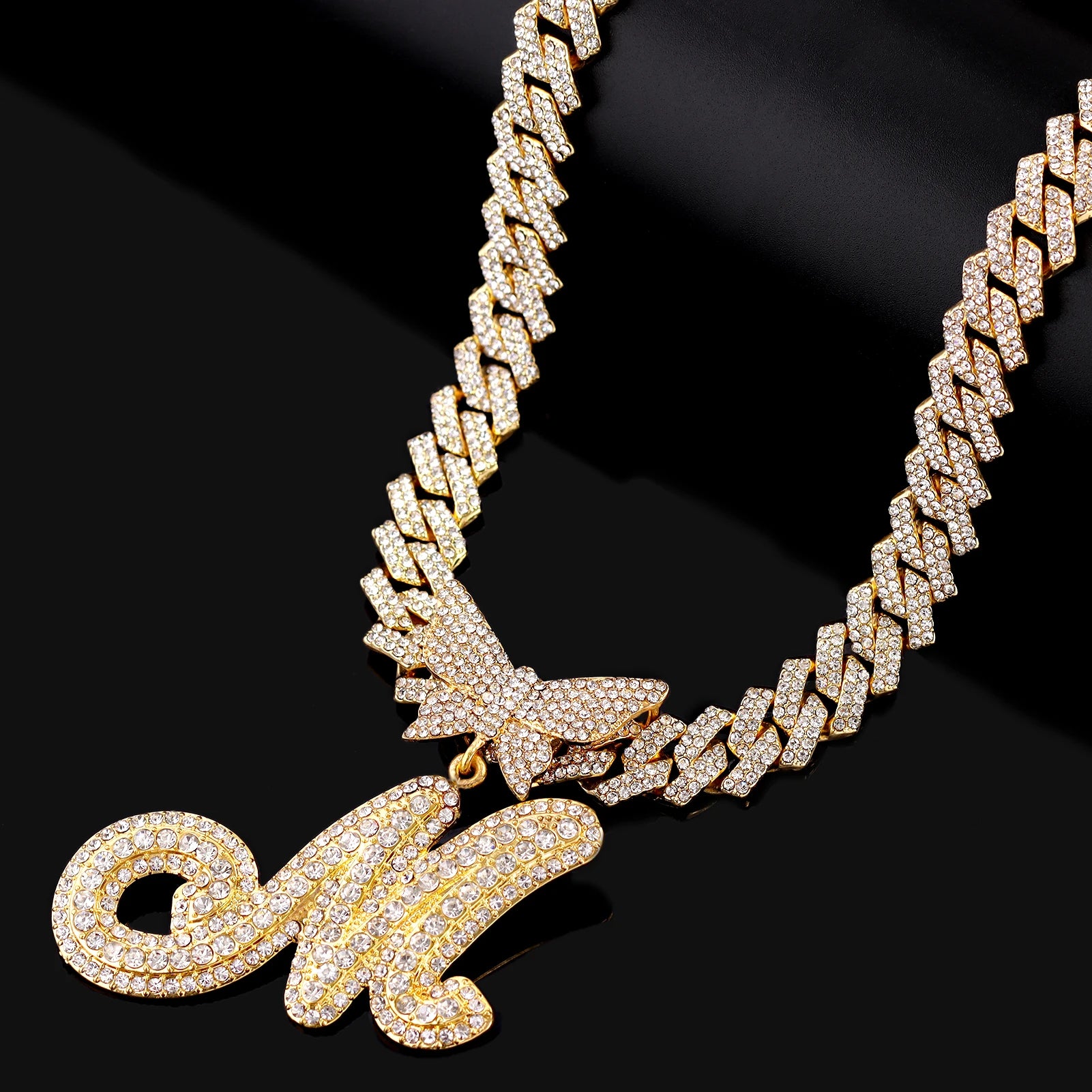 14MM Custom Initial Letter Cuban Butterfly Pendant Necklace Sale price€78,95