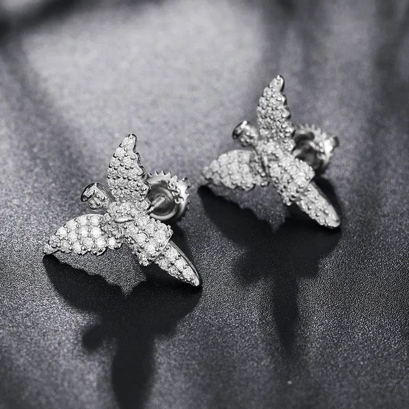 925 Sterling Silver VVS1 Moissanite Angel Stud Earrings