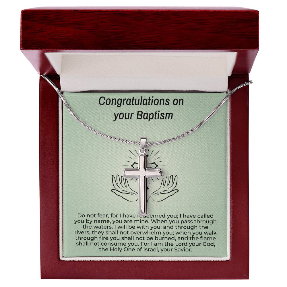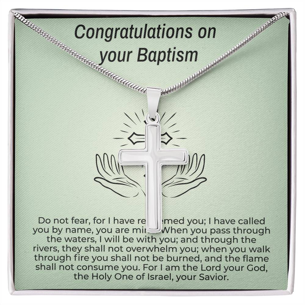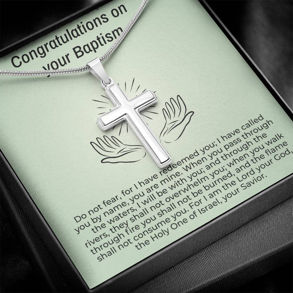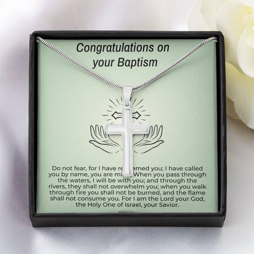 Add a heartfelt touch to your baptism gift with our Baptism Gift Message Card Cross Necklace. The delicate cross necklace comes with a personalized message card, making it the perfect way to express your love and support. The ideal gift for celebrating this special occasion. Blessings included!