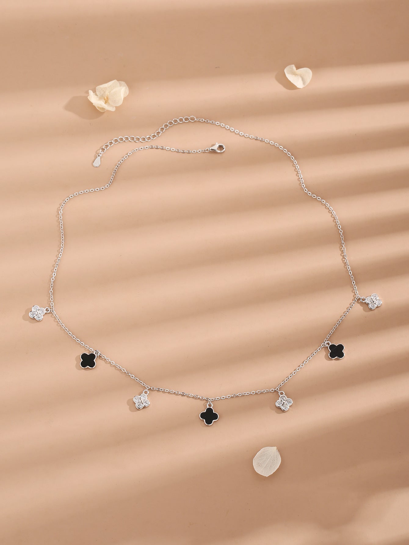 Black Onyx 925 Sterling Silver Clover Dangle Necklace