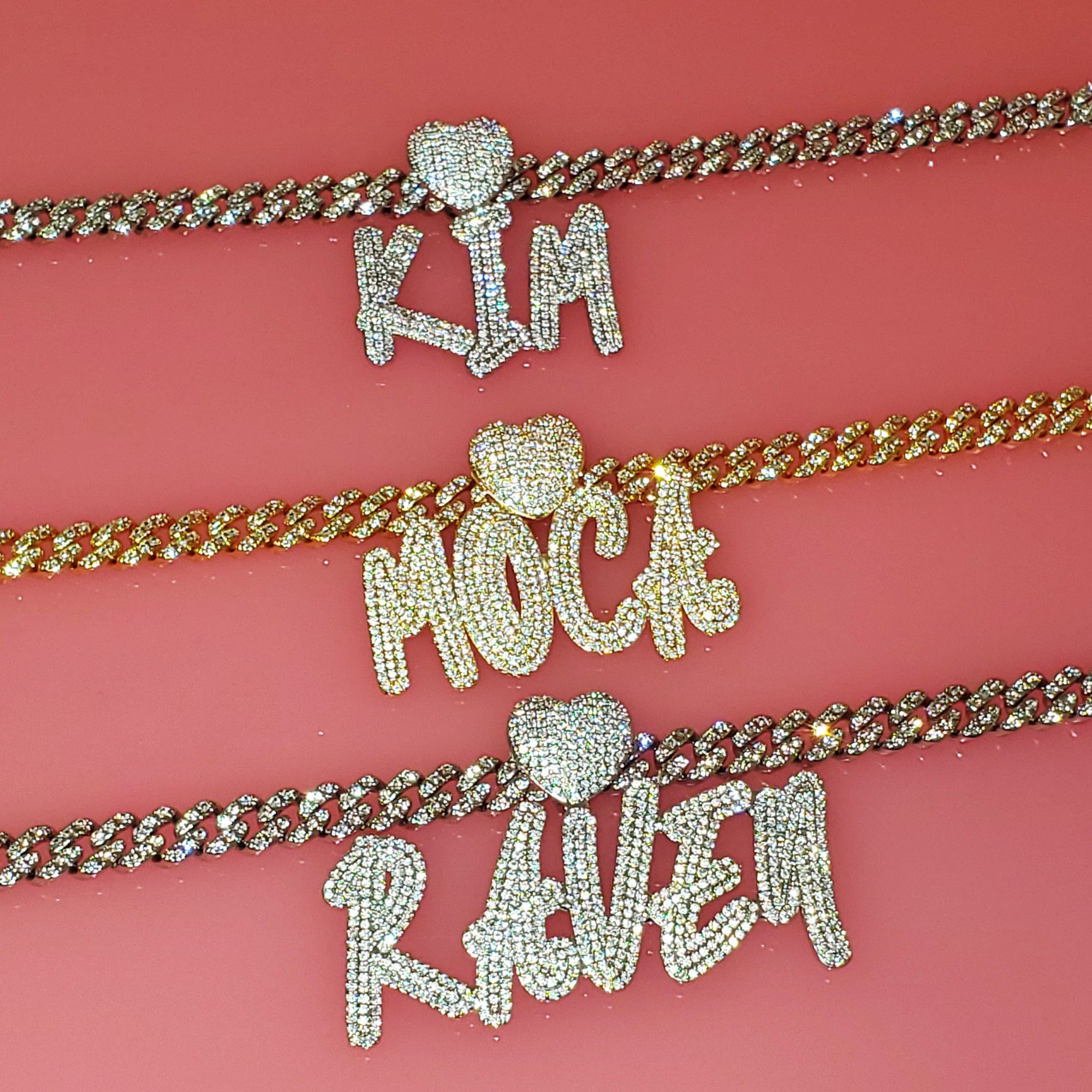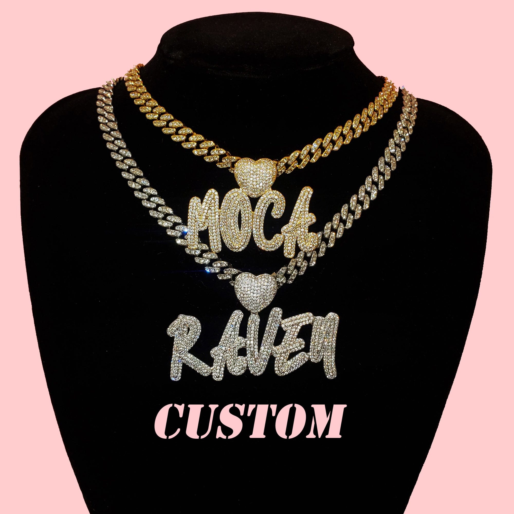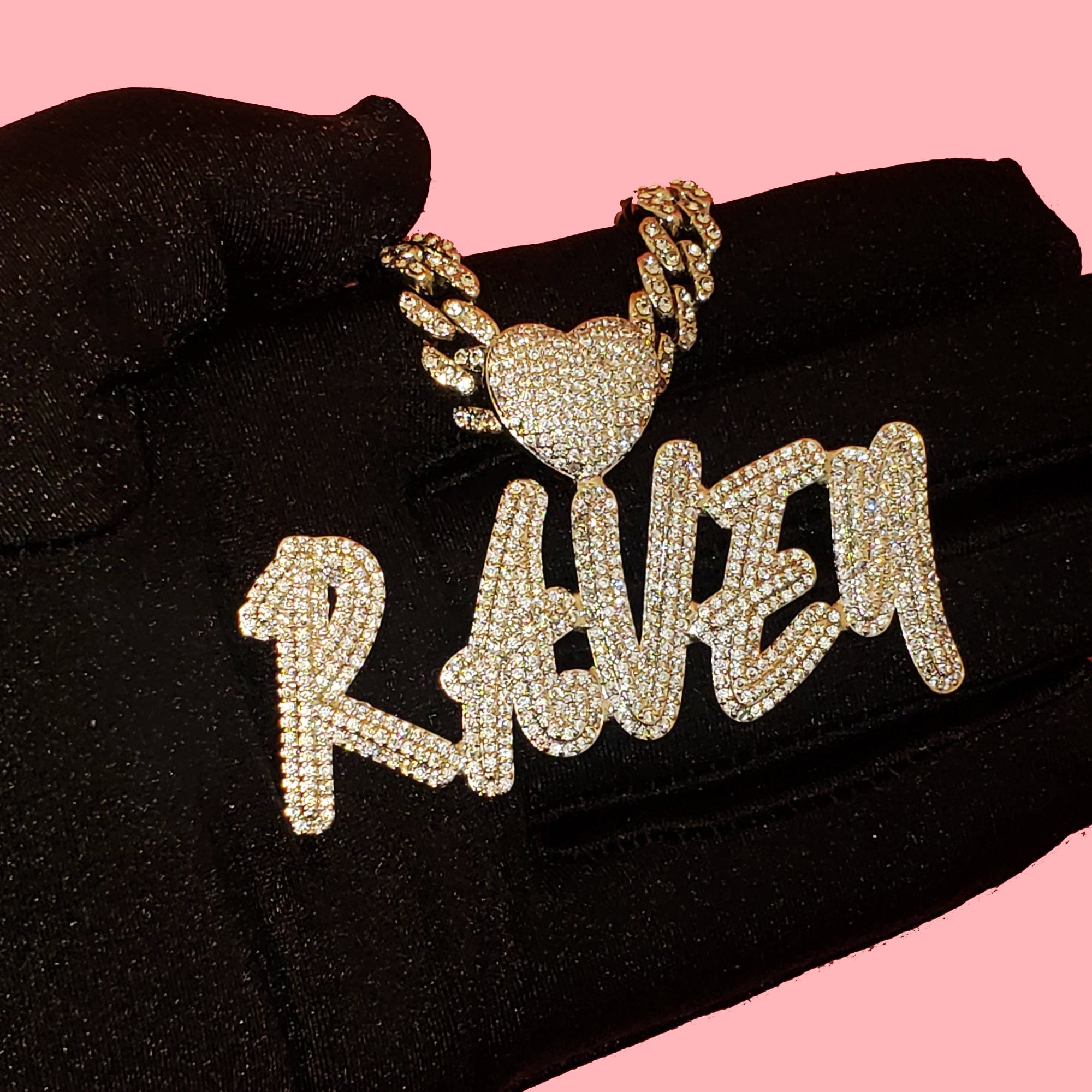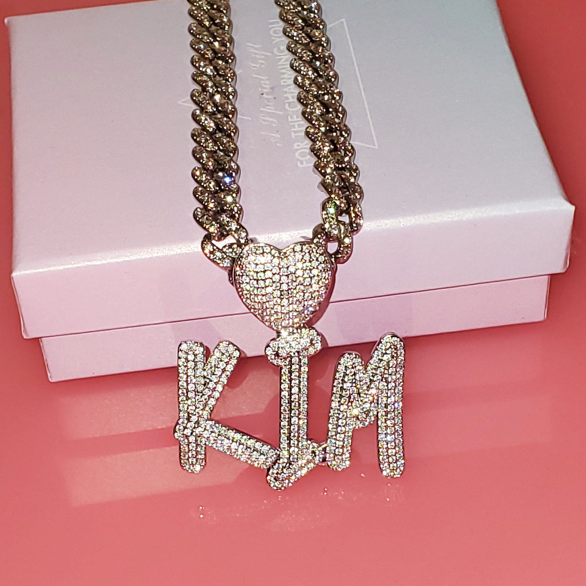 Trendiest dope initial cursive letter pendant topped with an iced-out heart.