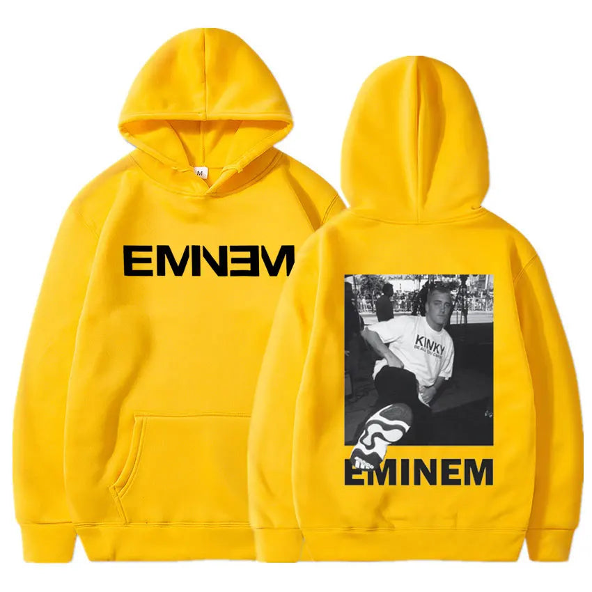 Show your love for the legendary Rap God with this exclusive Eminem Signature Graphic Hoodie. Crafted from premium heavyweight cotton, this stylish oversized hoodie offers both comfort and a trendy hip-hop vibe, perfect for any Slim Shady fan.