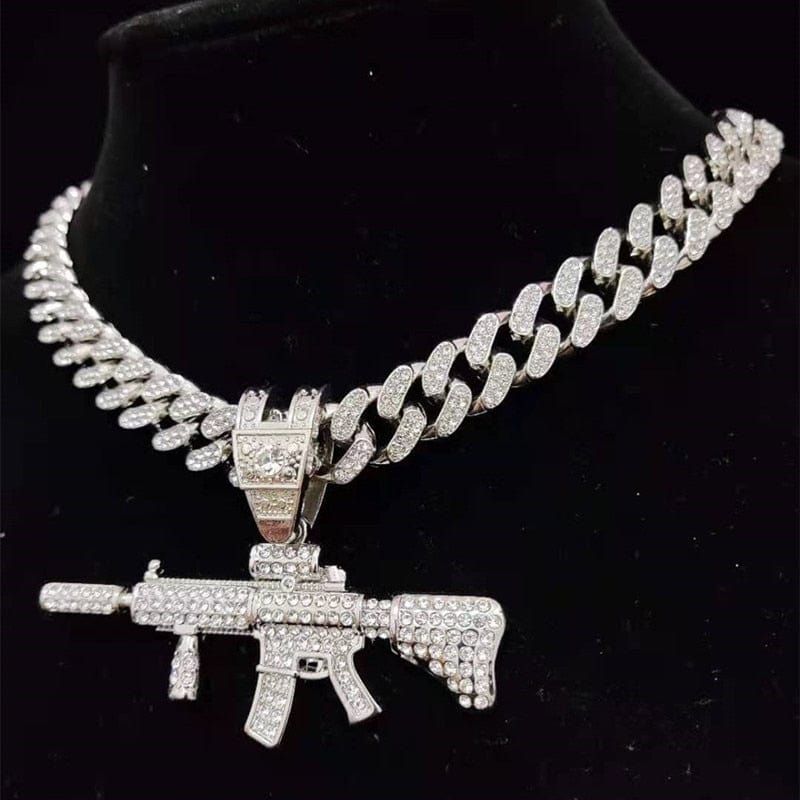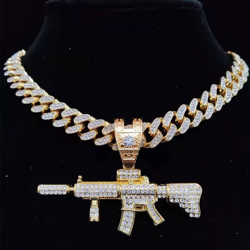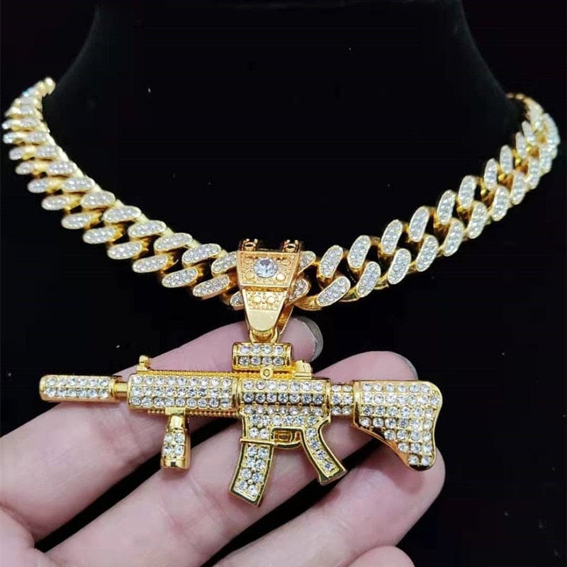 Stand out from the crowd with our hip-hop style rapper machine gun pendant charm with 13MM cuban chain!