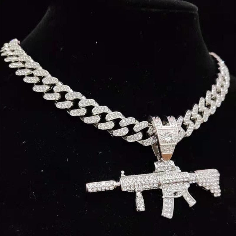 Fully Iced Submachine Gun Pendant Rapper Necklace
