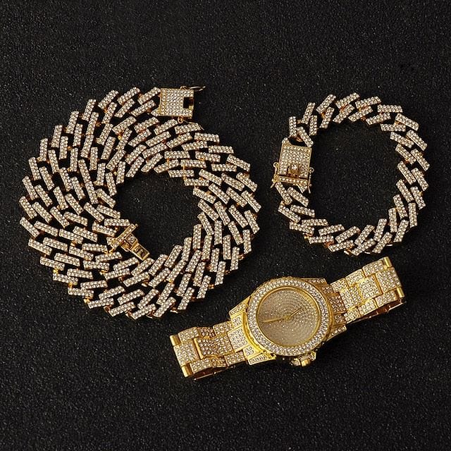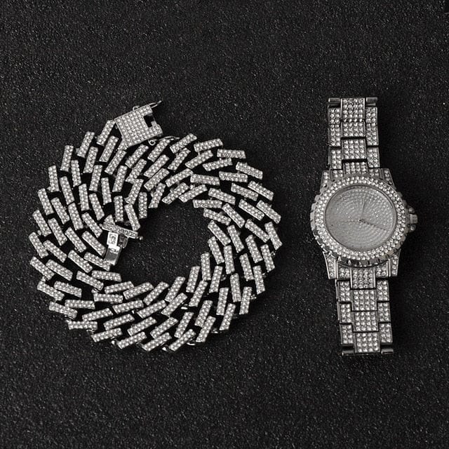 Complete your swaggy sophisticated jewelry collection right here with our Miami Micro Pave Cuban link watch set! Everything you need is here! If you need to be ready for lights, camera and of course, some action. This is the stunning set you'll surely love. It has the Miami Cuban Chain and bracelet that is equally paired with an attractive CZ diamond watch.