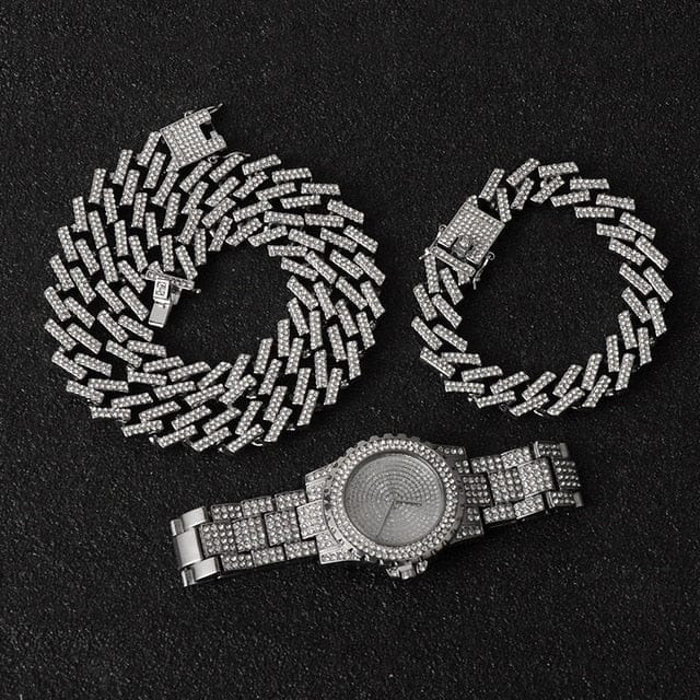 Miami Micro Pave Cuban Chain + Bracelet + Watch Set