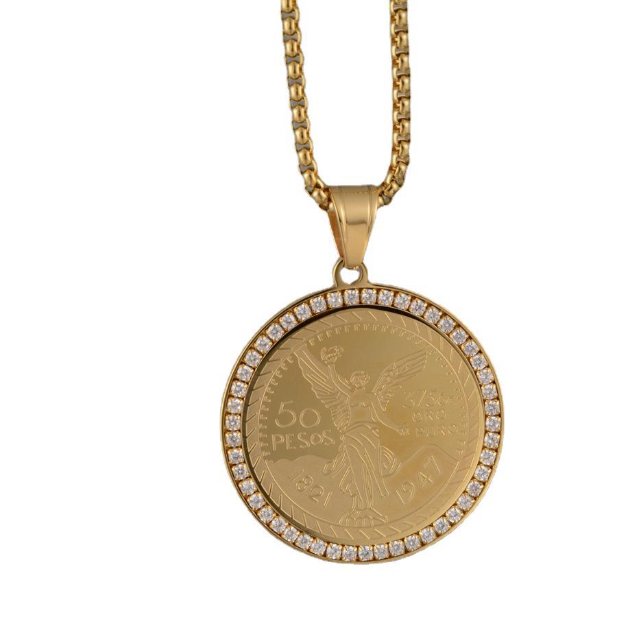 Iced Bezel 14k Gold Centenario Pendant Necklace