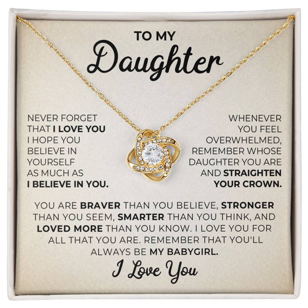 Show your daughter how much you love her with our "To My Daughter, I Love You" set, including a heartfelt card and a beautiful necklace. Express your love and pride in your daughter with this perfect gift.