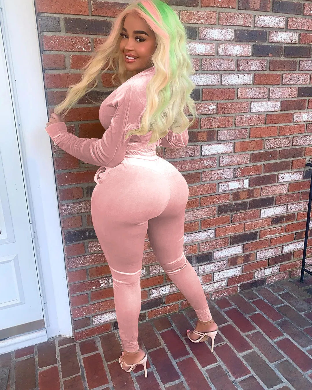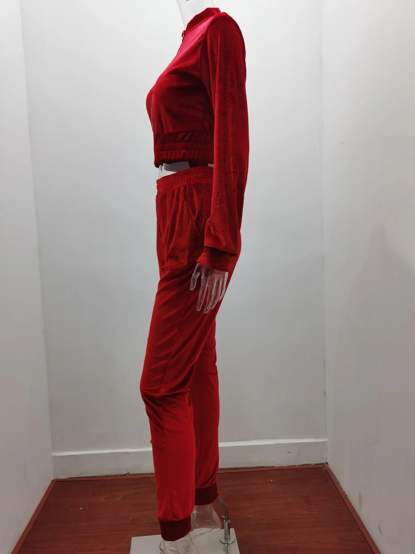 This Velvet Hoodie Crop Top Tracksuit is crafted with superior quality velvet fabric to deliver unparalleled comfort. The relaxed fit of the tracksuit ensures unrestricted movement, making it perfect for sports and casual activities. It features a hoodie top and a contrast drawstring waistband for an adjustable fit. The crop top is perfect for lounging or exercising in style.