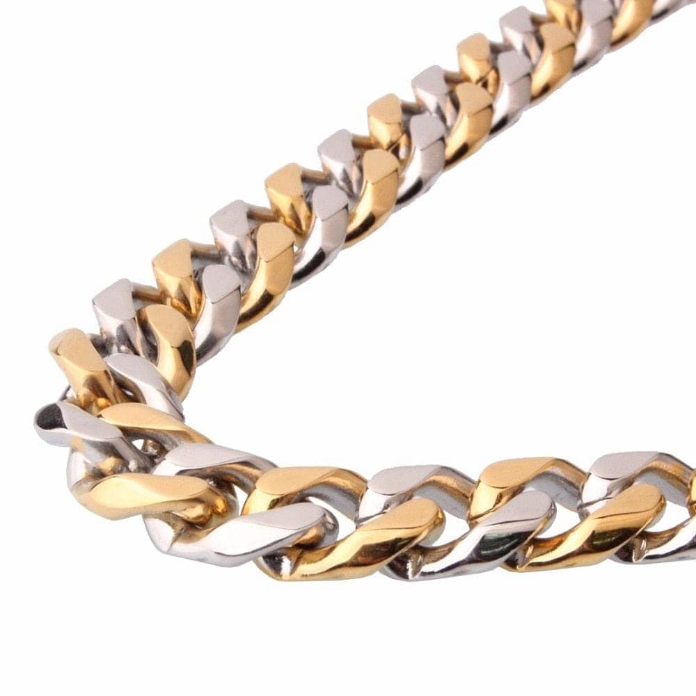 VVS Jewelry Stainless Steel Two-tone Curb Cuban Chain + FREE bracelet