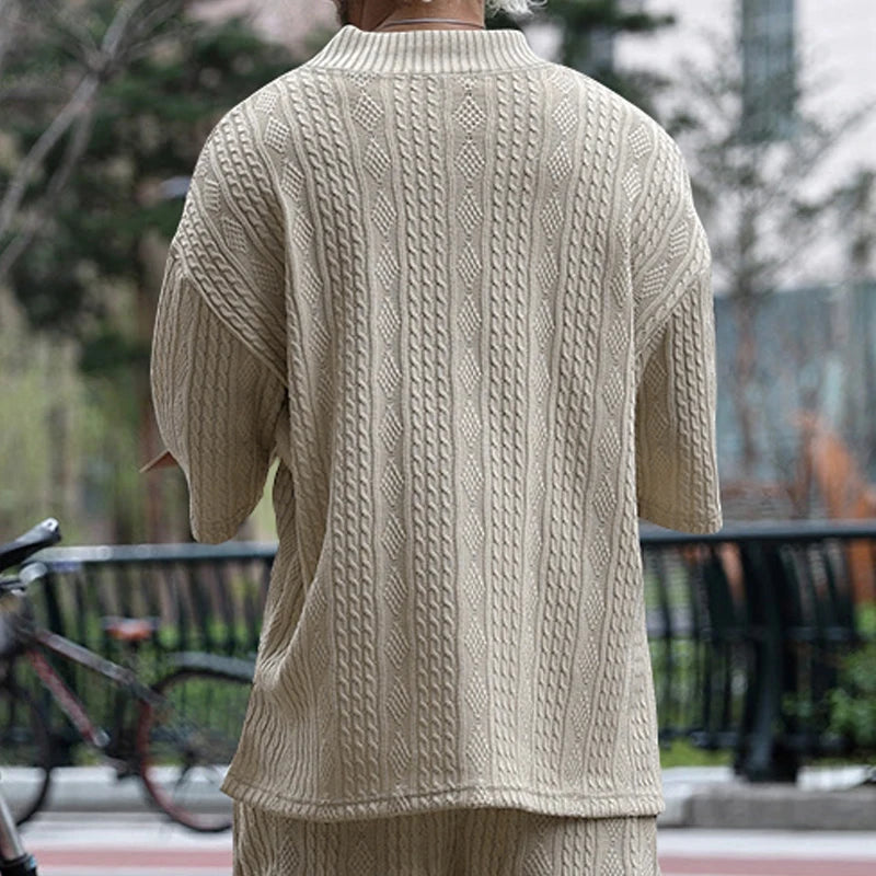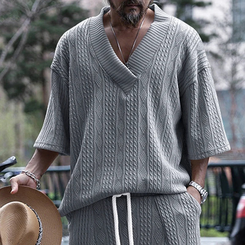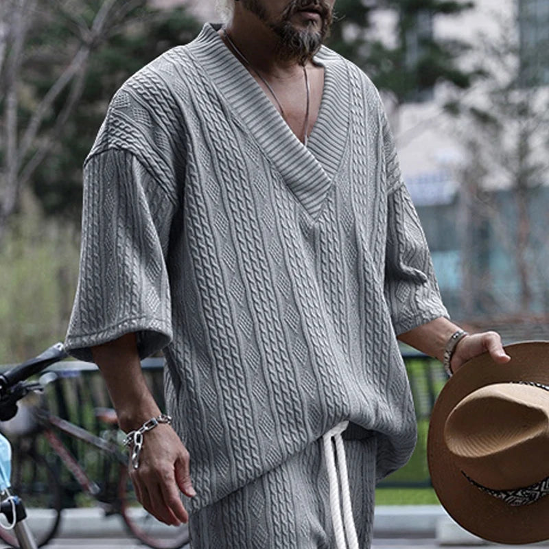 Slip into something comfortable with this high-quality v neck jacquard sweatsuit, and get ready for all eyes to be on you.