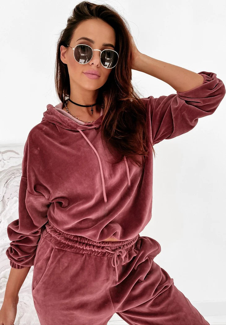 Velvet Hoodie Crop Top Tracksuit