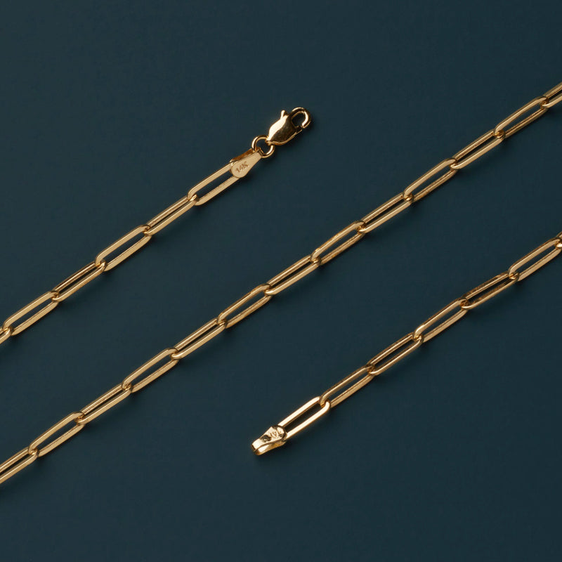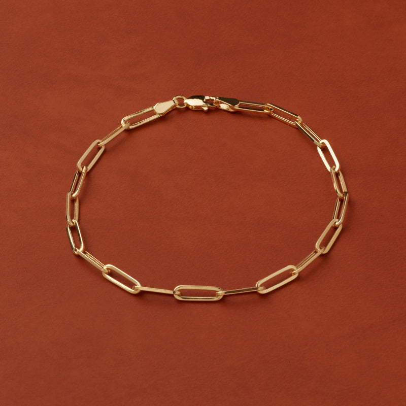 14K Solid Gold 3.4mm Paper Clip Link Bracelet